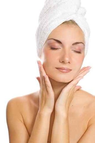 Young Lovely Lady Applying Moisturizer to Her Face after Shower - 30"H x 20"W - Peel and Stick Wall Decal by Wallmonkeys Description